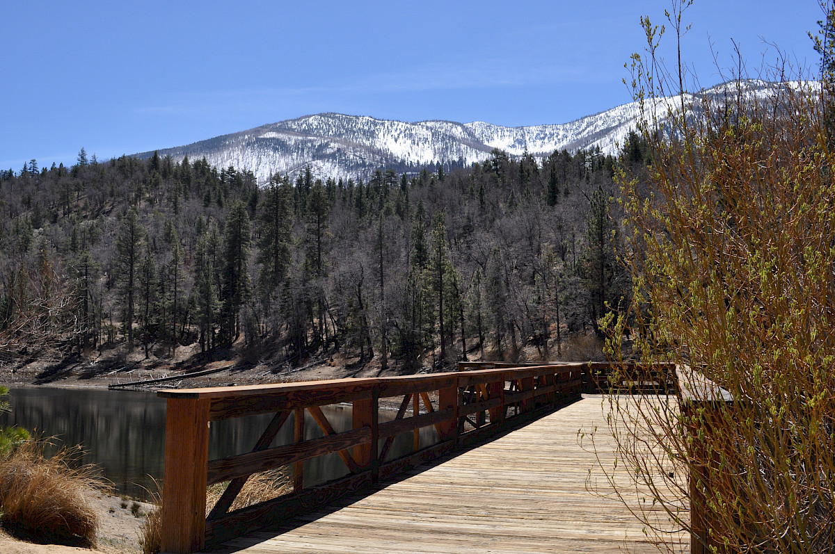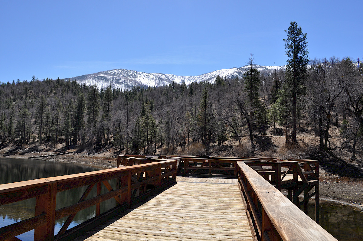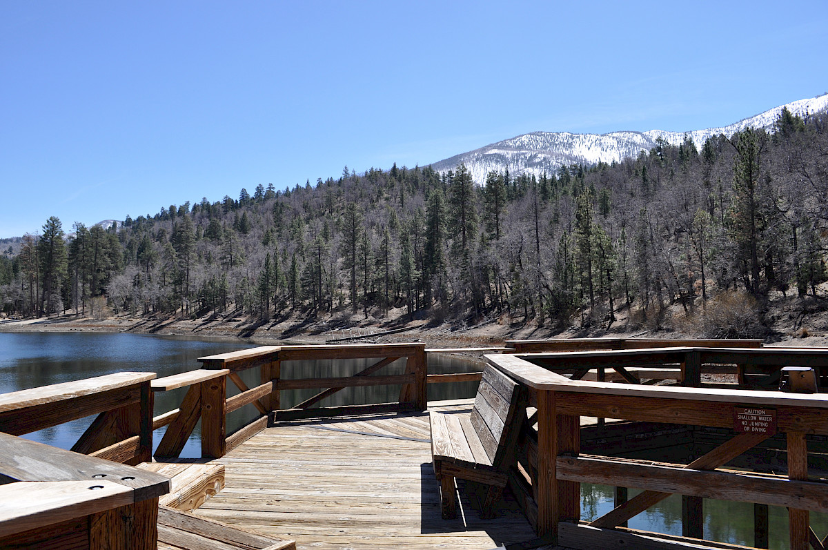 Jenks Lake picnic area is a day use area only at an elevation of 6,800 ft. This picnic area provides accessible fishing from either the fishing pier or from several fishing pads along the shore. An accessible trail is located along the parking lot side of the lake.
