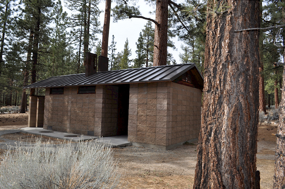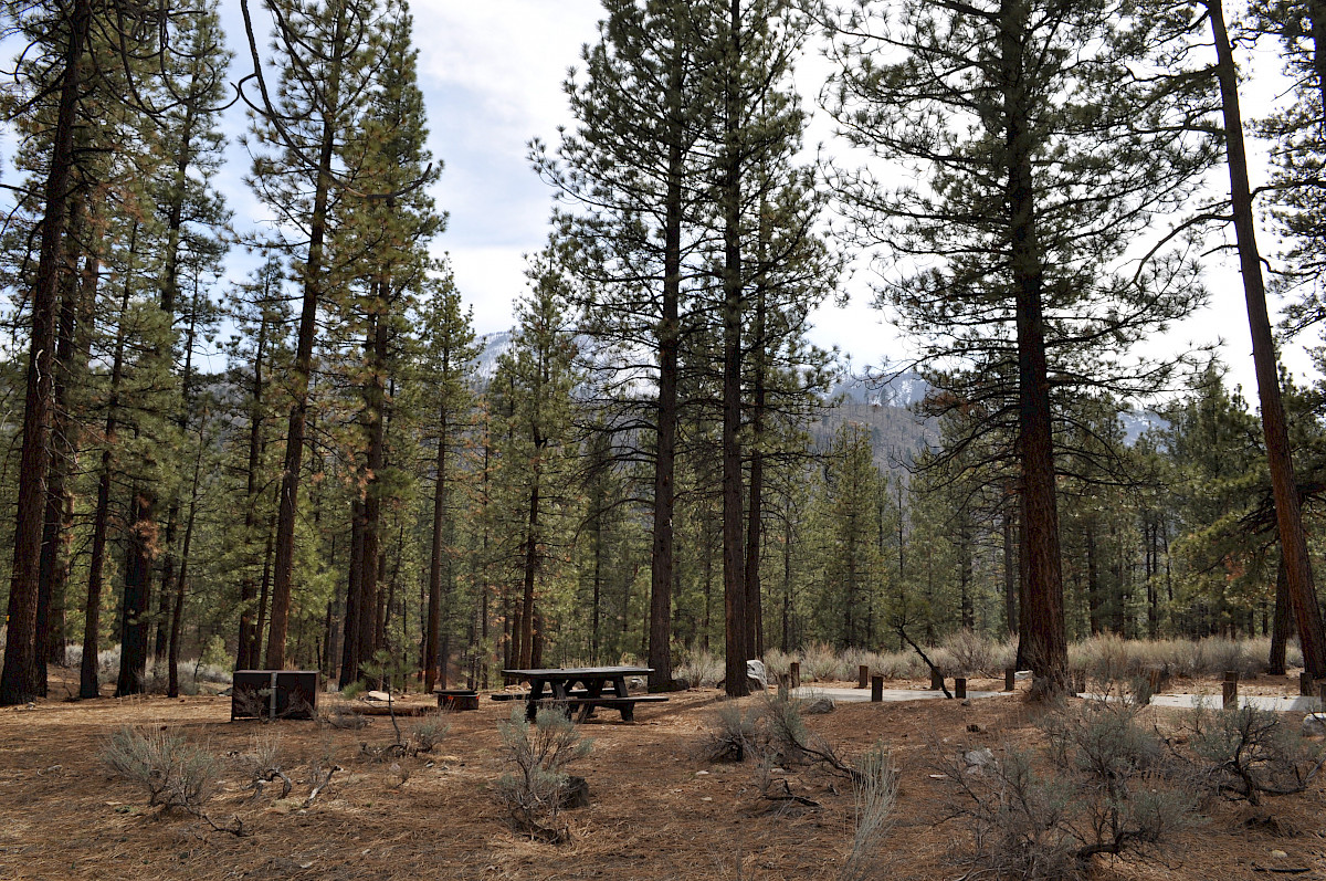The campground is nestled among pine-covered mountains, at an elevation of 6,880 feet. It is not far from the Big Bear Lake, but far enough to retain a remote and secluded atmosphere. Plentiful pines tower over the site, but are sparse in some places, allowing daylight to flow in. A variety of mountain creeks and streams are nearby.