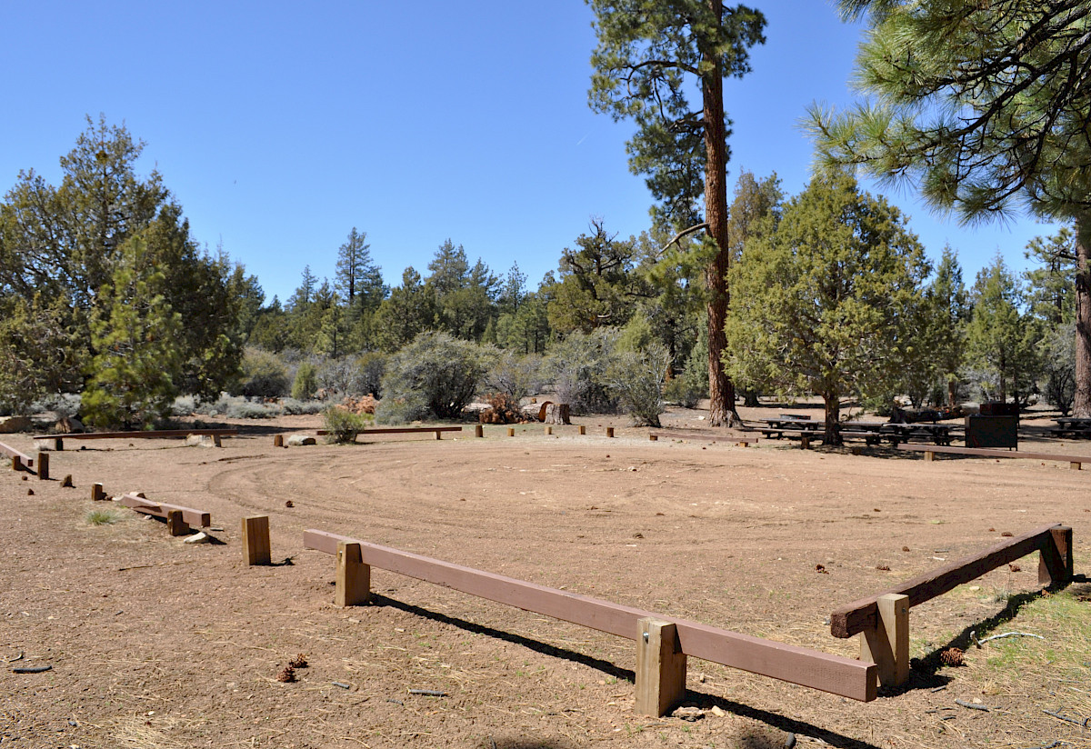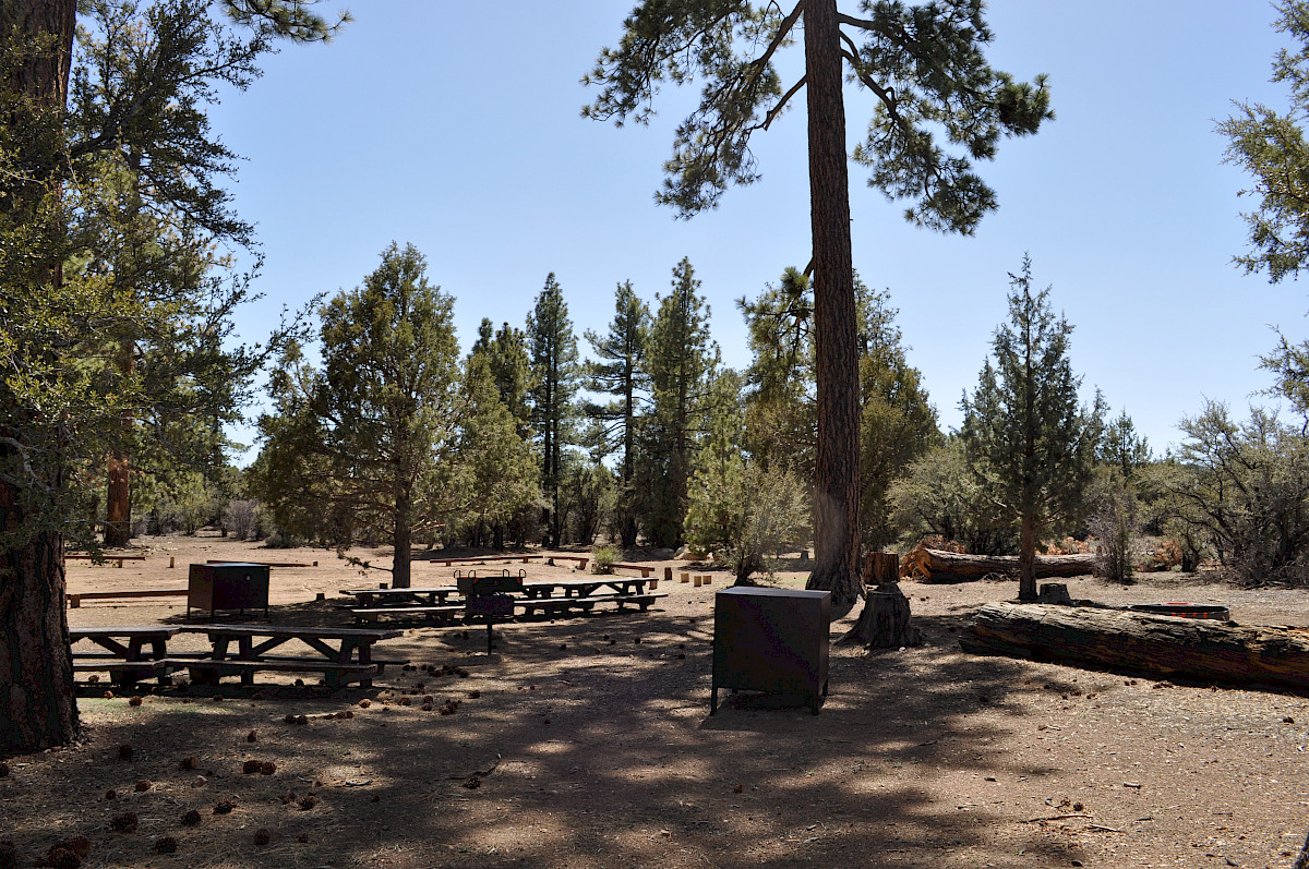 The campground is located northeast of Big Bear Lake at an elevation of 7,542 feet. It is situated in a dense pine forest along the Gold Fever Auto Tour Trail, which provides a variety of interpretive sites that highlight the rich gold mining history of the area.