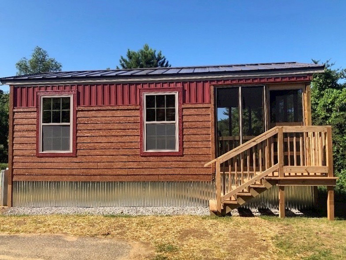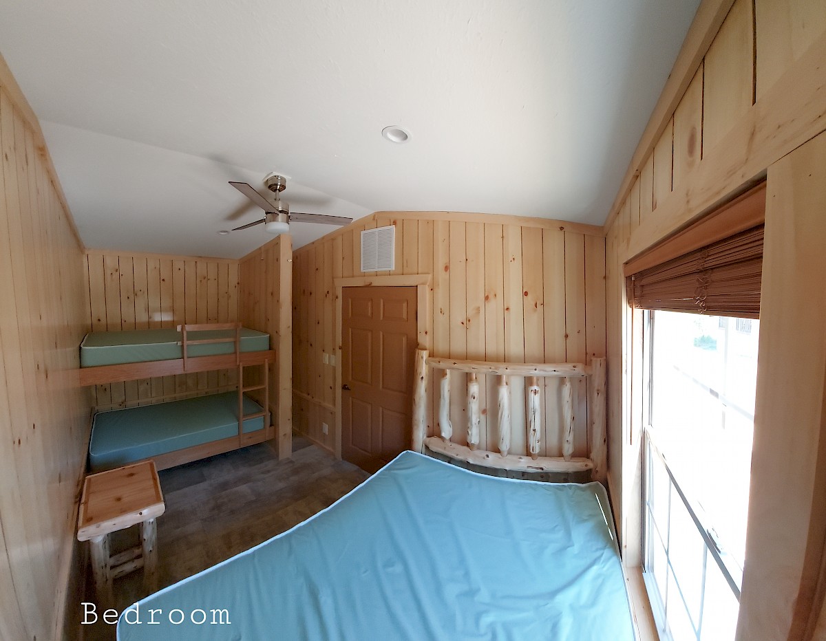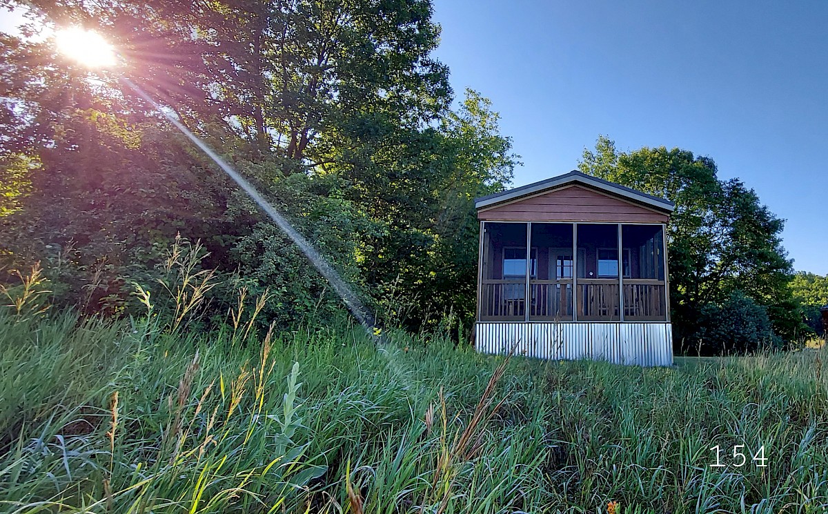 Prime campsites at Pontiac Lake Recreation Area Campground now have lodge style, camper cabins! Amenities include one set of bunk beds and one queen bed in the back bedroom, and a futon in the living room. These units sleep up to 6 persons. In the common area, you will find a dining space and mini kitchenette supplied with a mini fridge, microwave, and coffee maker. Please bring your own cooking essentials. Each cabin site has a picnic table and fire grill/pit combo to give you that outdoor camping experience! These rentals are electric-only, providing heating and cooling, but no running water. The campground's restroom facilities are a short distance away. All cabins have a screened-in front porch and patio furniture allowing visitors to enjoy the hill-top views in the campground.
