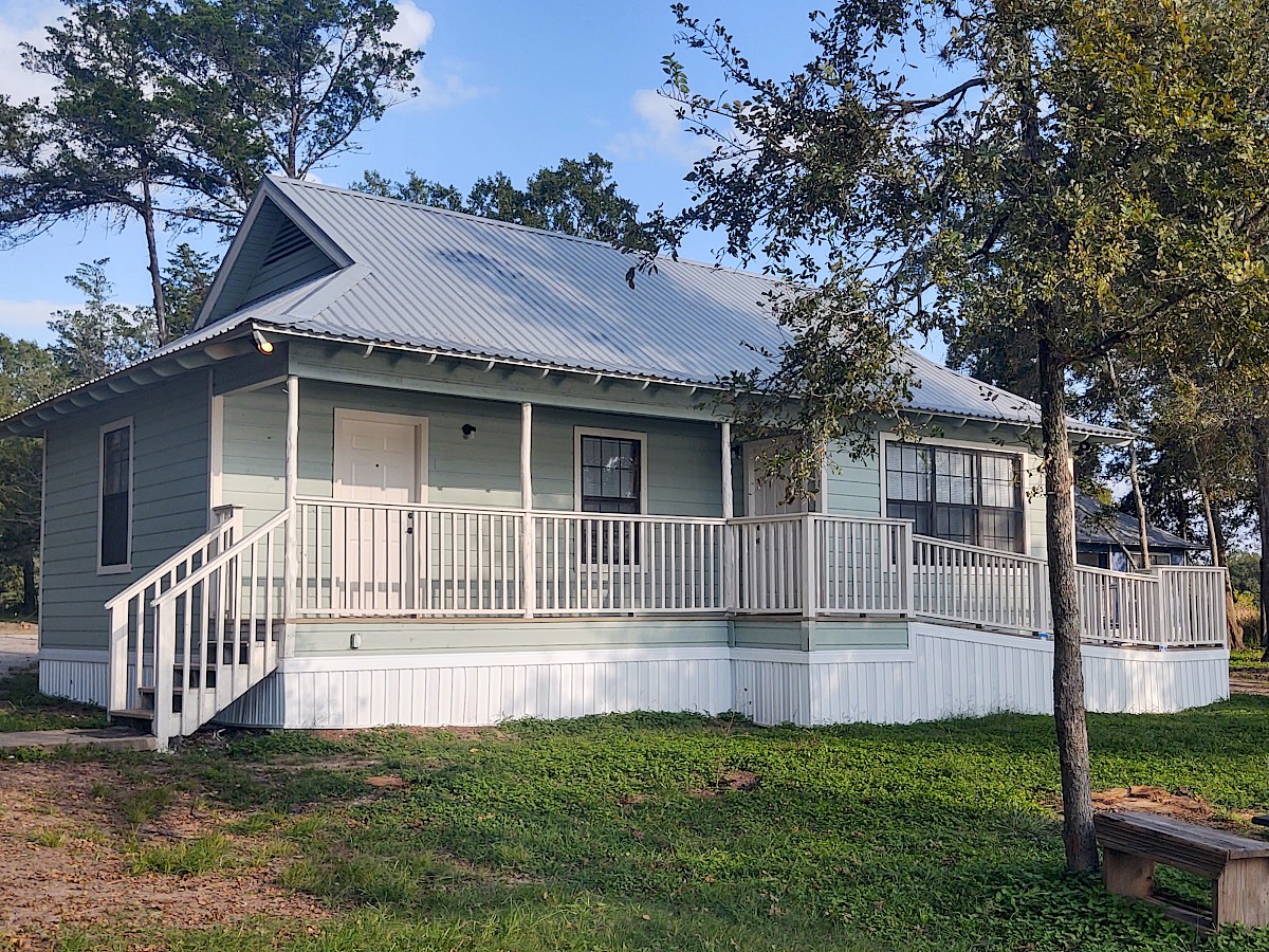 - 2 bunkhouse cabins (106 & 108) that sleep up to 8. These have a full kitchen with cooktop, full size refrigerator, microwave, coffee pot, and large bath.