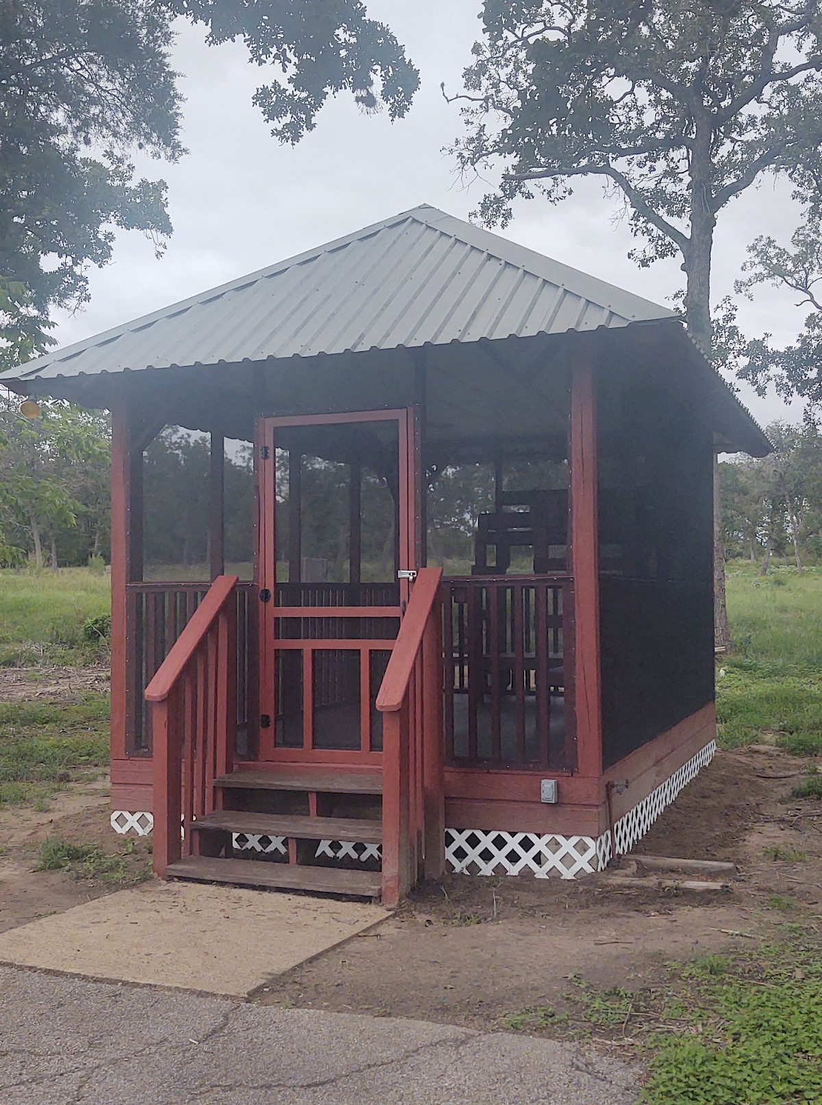 The campground includes 20 wooded RV sites which include 30/50 amp electric, water, a paved RV pad, picnic table, and fire ring/grill combo. Both tent and RV camping are permitted. Oak Thicket Park also has a dump station and pump-out service. In addition to the regular campsites, Oak Thicket Park also provides 6 screened shelters with two bunk beds which sleep up to 4 persons. Each shelter has electricity, a ceiling fan, outside electric and water spigot, a picnic table, and fire ring/grill combo. Restroom and shower facilities are available for shelter guests.